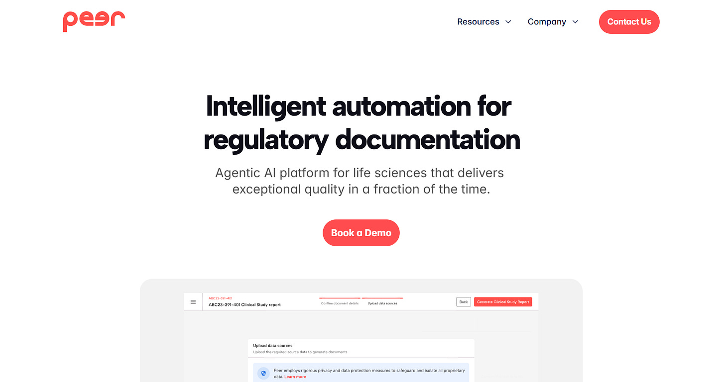 Peer AI is developing an agentic AI platform for life sciences that accelerates regulatory documentation across clinical, pre-clinical, and manufacturing phases. It provides a unified workspace for authoring, managing, and validating regulated documents, with human oversight built directly into the workflow.
