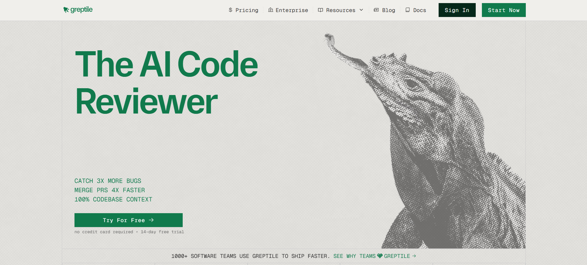 Greptile is an AI code reviewer that plugs into GitHub and GitLab, reviewing pull requests with full context of the codebase. Instead of syntax checks or linting, it provides in-line comments that catch bugs, flag antipatterns, and offer architecture-level suggestions.